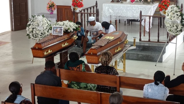 Abalados, os familiares não gravaram entrevista. O esposo de Cristiane e pai de Richarlyson, Marivaldo Cerqueira Santos, permaneceu o tempo inteiro ao lado dos caixões.