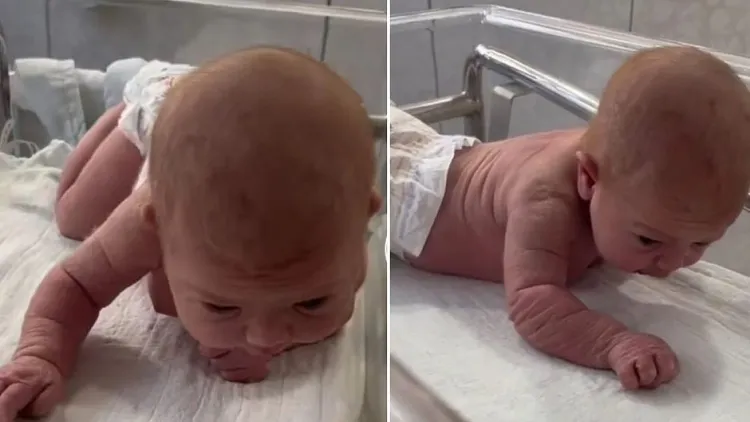 Recém-nascida de 3 dias surpreende ao levantar a cabeça e engatinhar; assista