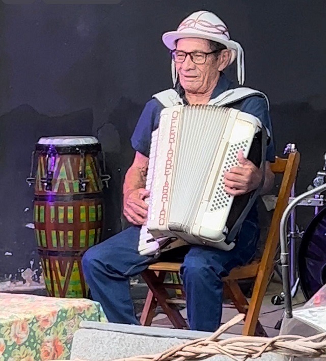 “Chegou lá e através de Chico Caipira, Luiz Gonzaga e Baio se conheceram. Antigamente não tinha palco e Luiz Gonzaga fez o show em cima do caminhão e com Baio no chão o acompanhando. Luiz viu nele um talento de poucos e resolveu presenteá-lo com a sanfona branca Scandalli 80 baixos. Ele está com a sanfona há 50 anos e o instrumento nunca desafinou. A sanfona tem gravada em letras vermelhas a frase: “Oferta do Rei do Baião” e a sanfona branca é muito rara, quem tocava com esse instrumento era Luiz Gonzaga que presenteava os sanfoneiros com uma sanfona branca, disse Matheus ao Acorda Cidade.