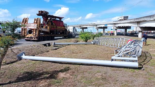 “Foram colocados estes pórticos e aí está uma prova da importância deles. Hoje um veículo veio colidir na estrutura preliminar de proteção, e não na viga do viaduto que seria um transtorno muito maior. Já estamos tomando as medidas necessárias juntamente com a Polícia Rodoviária Federal (PFR) e a Superintendência Municipal de Trânsito (SMT).Faremos a recomposição dos pórticos, serão fabricados novos. A carreta prancha estava transportando um caminhão com uma perfuratriz”, informou.