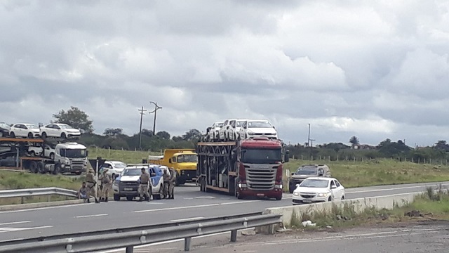O comandante da unidade, major Dênis Barbosa, informou que equipes estavam em deslocamento para a cidade de Tanquinho, na BR-116, quando avistaram a ação criminosa.