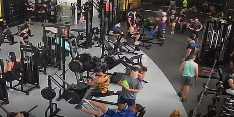 Os registros da câmera de segurança da academia 220 Fit mostram que o aluno treinava quando sentou na ponta de um aparelho para descansar. Segundos depois, a parte superior da máquina despenca, atingindo diretamente seus ombros e coluna. Um grupo de pessoas se mobiliza para retirar o peso e ampará-lo.