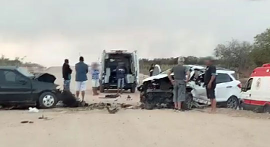 Dois carros colidiram no fim da madrugada desta terça-feira (15), na BA-408, trecho que liga a sede do município de Araci ao povoado Caldeirão, na região sisaleira da Bahia. A Polícia Militar informou que duas pessoas ficaram presas nas ferragens e morreram no local. O Departamento de Polícia Técnica (DPT) foi acionado para remover os corpos e fazer a perícia. Ainda de acordo com a PM, outras quatro pessoas sofreram ferimentos leves e foram levadas pelo Samu para o hospital de Araci. A Polícia Civil deve instaurar um inquérito para apurar as causas do acidente.