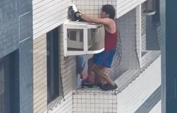Homem se pendura em varanda de prédio para resgatar gata em Salvador