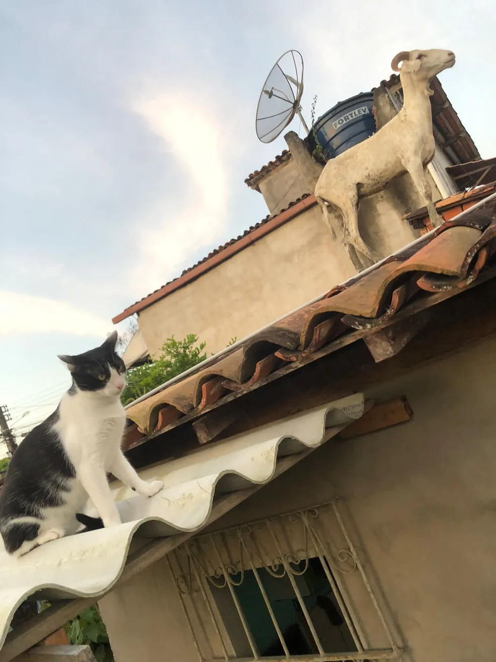 A situação tem chamado a atenção dos moradores que fizeram fotos do animal. Em uma delas, é possível ver que um gato se aproxima do bode e os dois se olham.