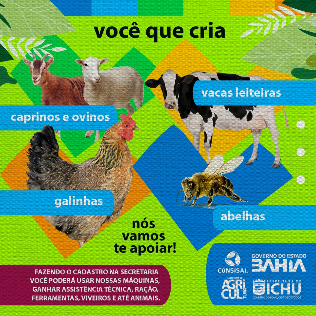 Ichu: Prefeitura Municipal através da Secretaria de Agricultura oferecerá vários benefícios aos criadores de caprinos e ovinos, vacas leiteiras, galinhas e abelhas