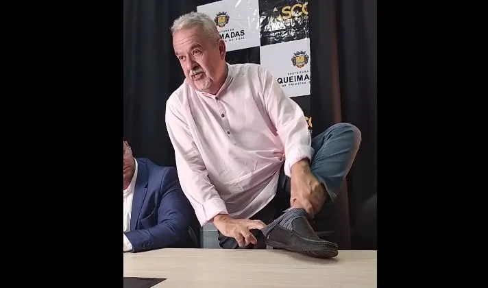 Prefeito mostra tornozelo livre durante Live para explicar presença da Polícia Federal em Queimadas