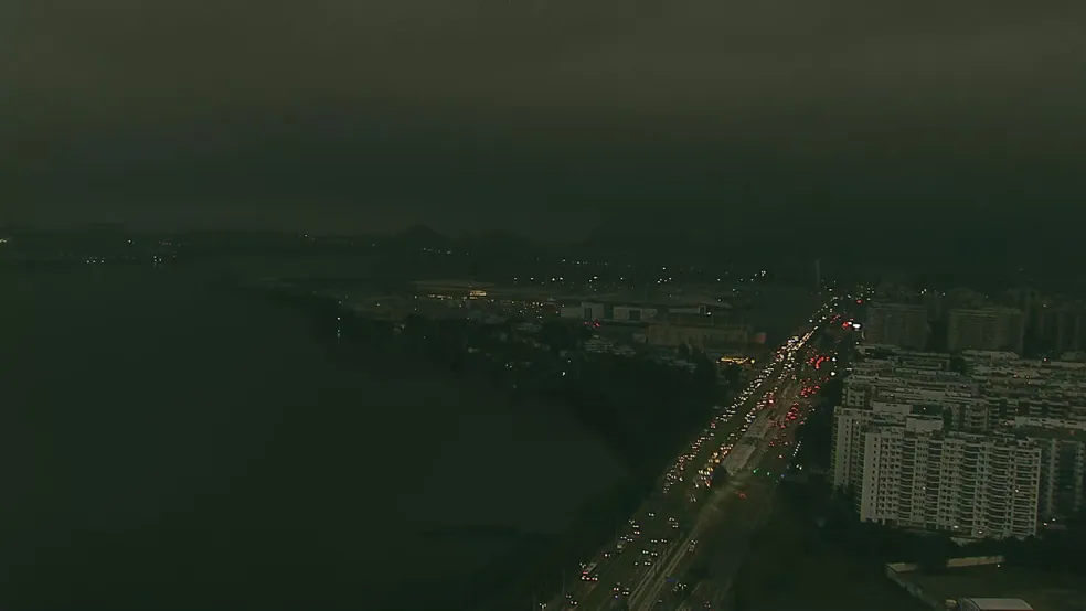 Dia virou noite no Rio às 7h desta quinta-feira (26) — Foto: Reprodução/TV Globo