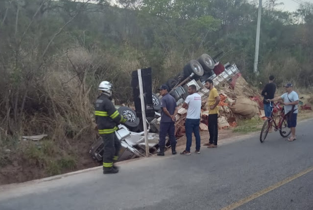 Na manhã desta terça-feira, 31 de outubro de 2023, um caminhão carregado com cenouras capotou na BA 131, na saída da cidade de Saúde, sentido Senhor do Bonfim.