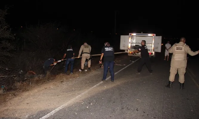 Os peritos encontraram no bolso de uma das vítimas a identidade em nome de Edilson Simões Ribeiro, natural de Valente. Ele usava capacete, mas o impacto foi tão violento que sofreu amputação de uma das pernas. Com a outra vítima não foi encontrado nenhum documento.