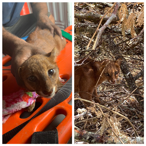 De acordo com Evandro do Grupo Águia Resgate a equipe se deslocou imediatamente localizando o felino, que segundo informações é da família da Jaguatirica, fazendo o resgate do animal que estava ferido e com muita fome.