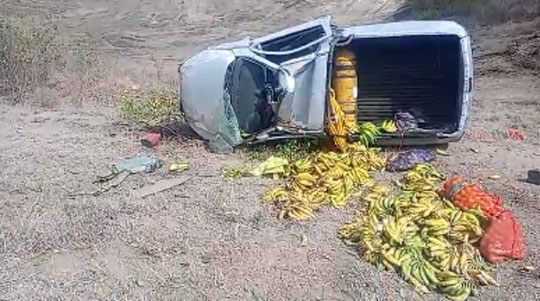 Uma picape Saveiro carregada com frutas e verduras capotou às margens da BA-120, em Retirolândia, região sisaleira da Bahia, na manhã desta sexta-feira (1). O motorista perdeu o controle da direção e desceu em uma ribanceira, na altura da localidade conhecida como ‘baixa da presa’. Não há detalhes sobre as circunstâncias do acidente. Segundo a Polícia Militar, dois ocupantes do veículo sofreram ferimentos leves e foram levados para o hospital da cidade, mas passam bem. Conforme a polícia, as vítimas seguiam para a feira livre de Santaluz, que fica na mesma região de Retirolândia. A PM disse que informou a ocorrência à Polícia Rodoviária Estadual (PRE).