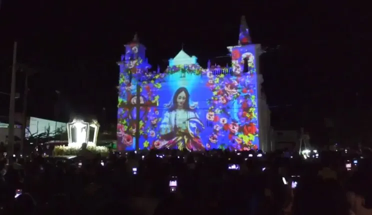 A festa encerrou com o grande espetáculo da imagem mapeada em frente a Igreja Matriz
