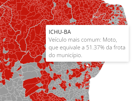 - Em 1.903 cidades, a moto é o veículo mais registrado.