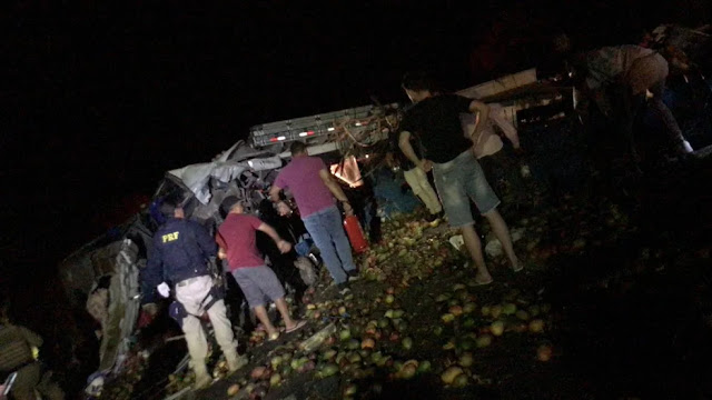 Já as pessoas que estavam no caminhão saíram da cidade de x e tinham como destino Feira de Santana, onde fariam o descarregamento do caminhão, que levava mangas. Ainda não há informações sobre o que causou a batida.