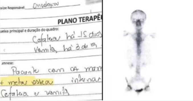 Um ano depois, a mulher foi diagnosticada com metástase óssea, quando o câncer se espalha para o osso, e iniciou o tratamento de quimioterapia.