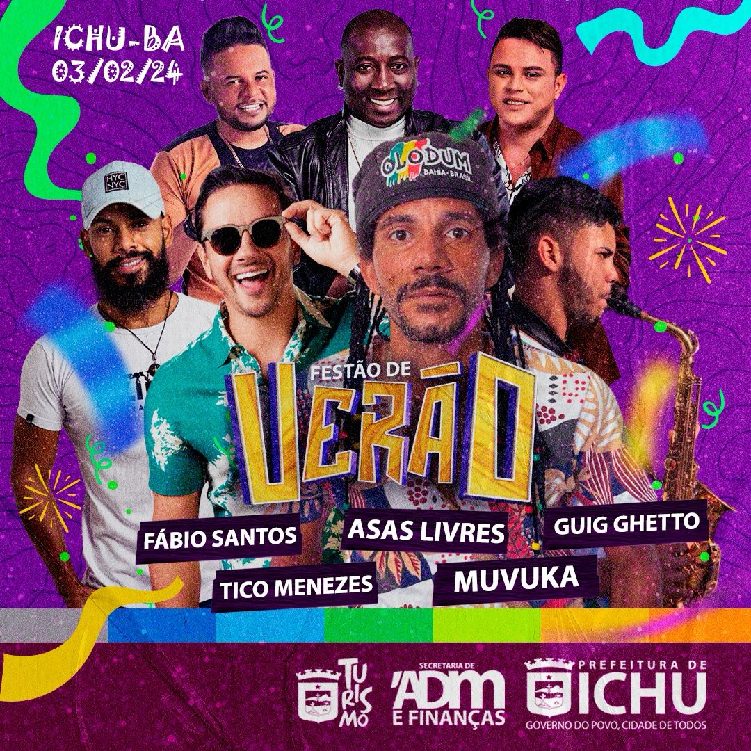 Então, todos estão convidados para nesse final de semana vir para Ichu, pois será de muita alegria e diversão com o Concurso de Máscaras, Alegorias e o Desfile de Baianas e o Festão de Verão.