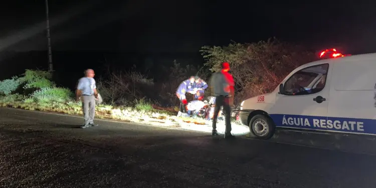 Um motociclista ficou ferido na noite desta sexta-feira, 09, após a moto que pilotava ser atingida na traseira por um ônibus da empresa São Mateus na BA 120, trecho Coité – Retirolândia, mas precisamente na região do Povoado Ponto da Pinha. As informações são de Gildo Carneiro motorista e coordenador do Águia Resgate que prestou socorro a vítima.
