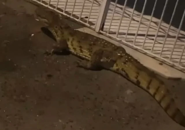 Após as fortes chuvas que caíram em Feira de Santana na noite de sábado (17), um jacaré apareceu no bairro Caseb e chamou a atenção dos moradores.