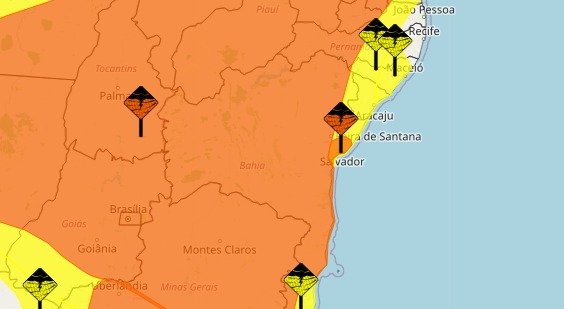Ainda nesta terça-feira (20), o Instituto Nacional de Meteorologia (Inmet) manteve o alerta laranja para a maior parte do estado, incluindo toda a região sul, sudoeste e centro-oeste e norte da Bahia. A região norte, na divisa com o estado do Alagoas, ainda se encontra em alerta amarelo.