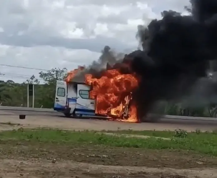 Ambulância do município de São José do Jacuípe pega fogo na BR 324