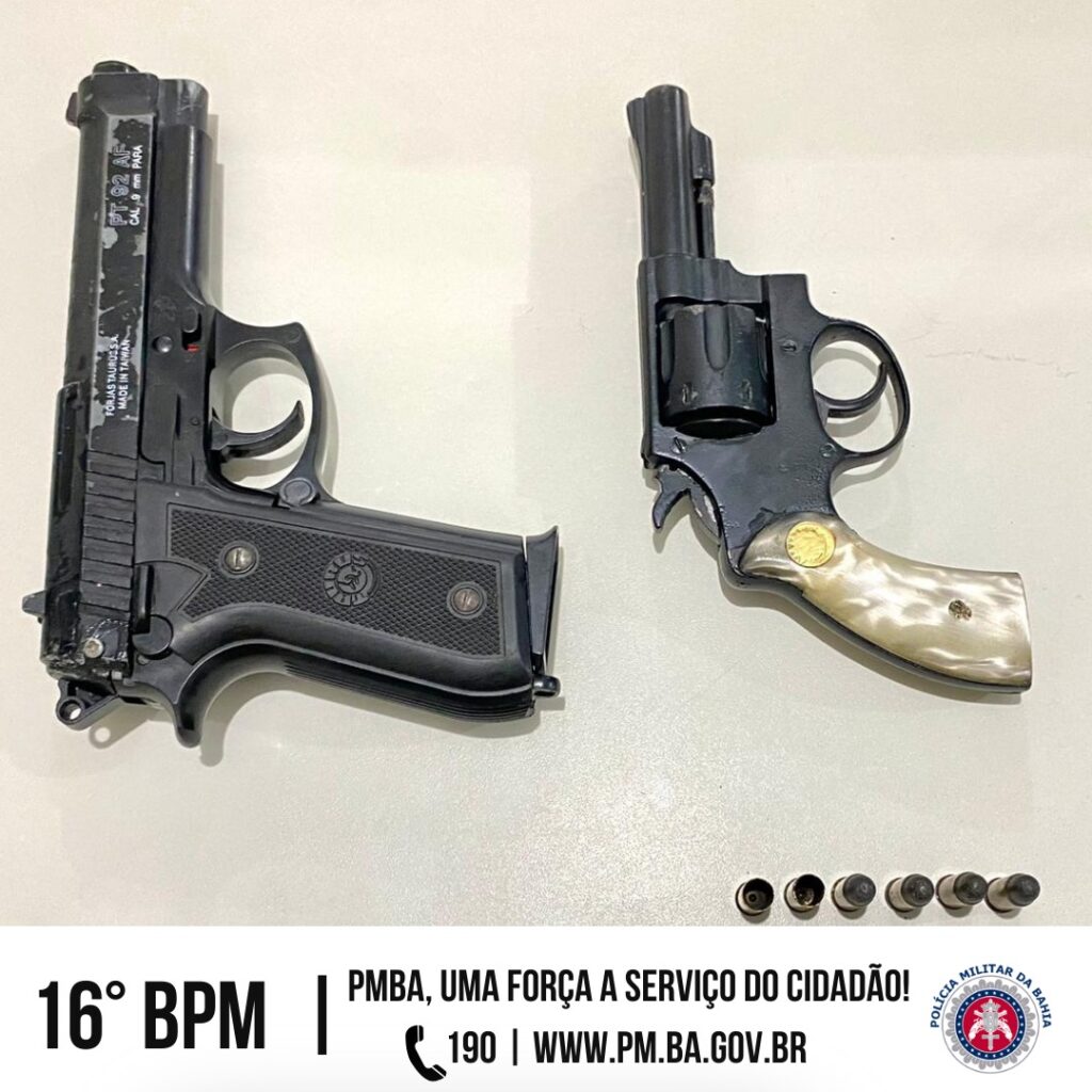 Na ação foram apreendidos um revólver calibre .32 com numeração suprimida, dois estojos deflagrados e quatro picotados. Além de uma pistola de airsoft.