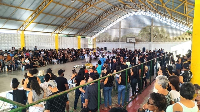 Com ginásio lotado, familiares, amigos e conhecidos, aguardavam o início do velório. Houve um atraso, e até por volta de 17h, os corpos ainda não tinham sido liberados do Departamento de Polícia Técnica (DPT).