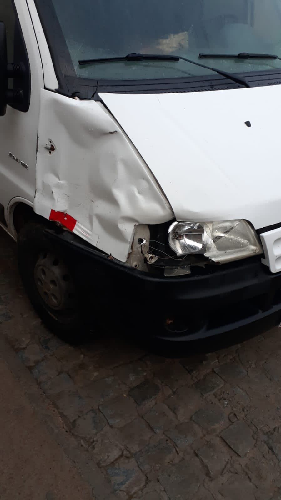 Uma Van pertencente ao Mercadinho Soares localizado na Rua Otaviano Cedraz em Ichu, ficou danificada após uma colisão com animal (jegue) na BA 411 próximo a Candeal.