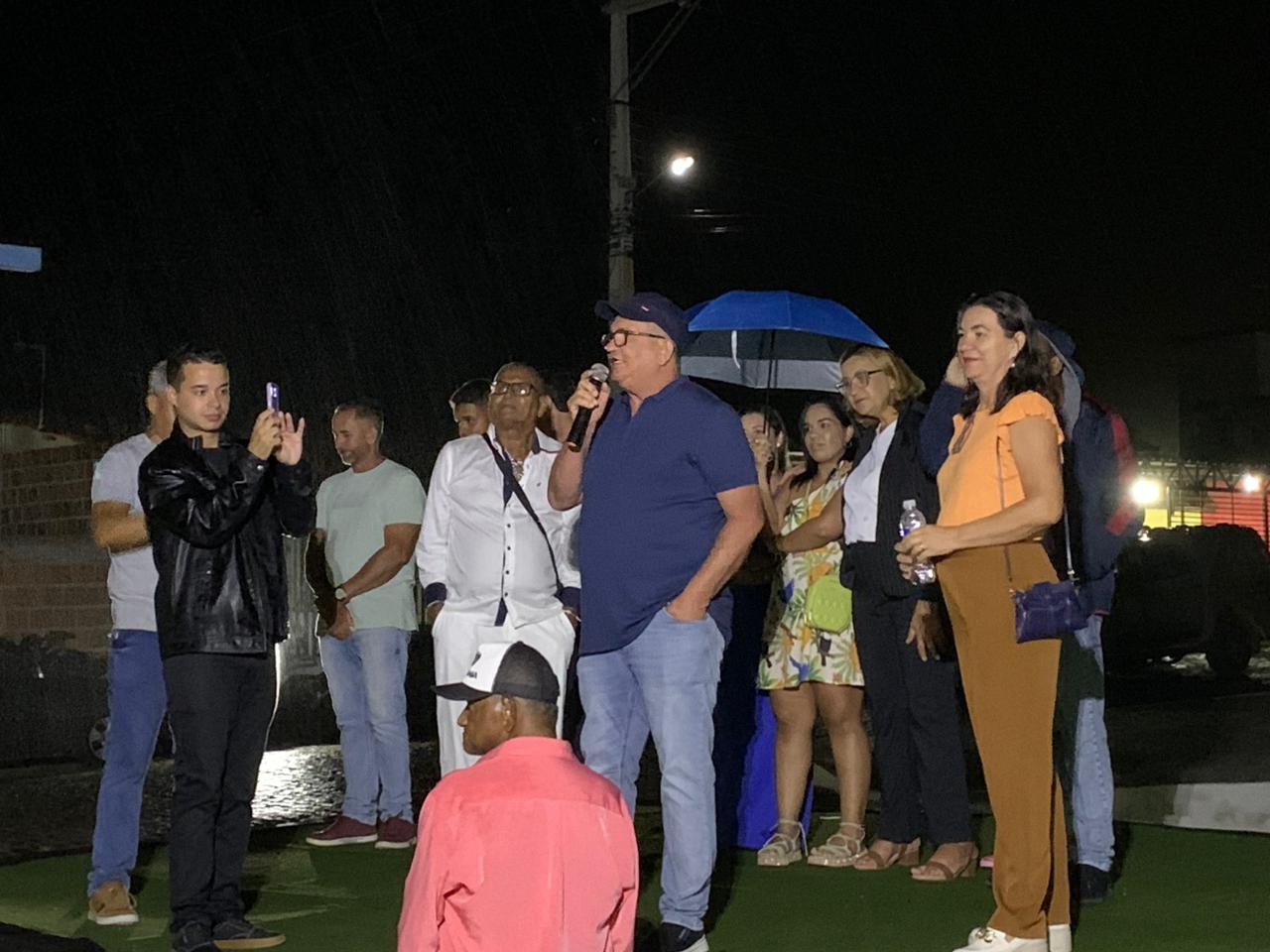 Mesmo com o tempo chuvoso, um grande número de pessoas compareceu ao povoado de Barra em Ichu para participar da inauguração da requalificação da praça que foi custeada com recursos próprios.