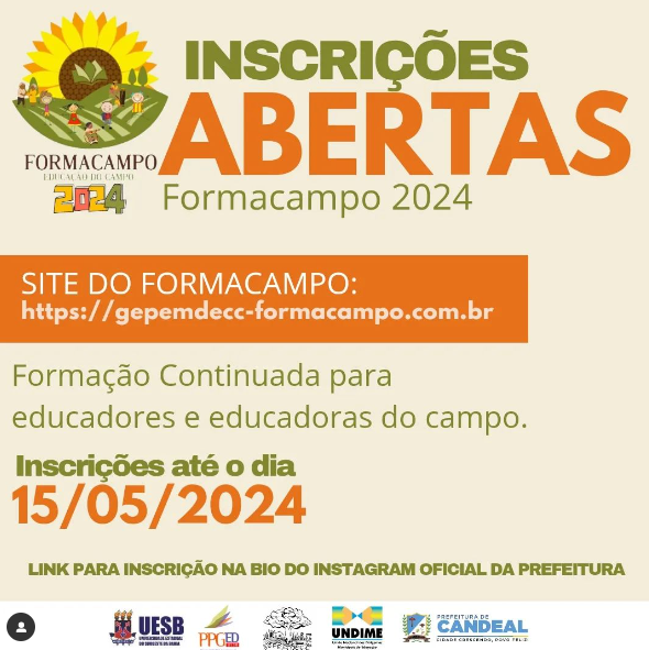 A Secretaria Municipal de Educação de Candeal-Ba convida a todos os profissionais da educação das redes municipais e estadual do município para participarem do Formacampo.