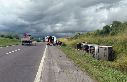 Um ônibus da empresa Expresso São Matheus, que fazia o itinerário Monte Santo-Salvador, tombou na manhã desta quinta-feira (16) na BR-324, no trecho da cidade de Amélia Rodrigues. O acidente aconteceu por volta das 9h30, próximo ao acesso do distrito Mata da Aliança.