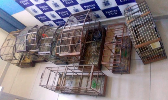 Todo o material apreendido e os pássaros resgatados foram levados para a Delegacia de Polícia Civil para os procedimentos cabíveis.