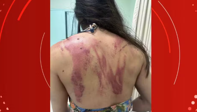 As fotos dos hematomas pelo corpo foram compartilhadas pela própria vítima nas redes sociais, onde ela se manifestou sobre a situação.