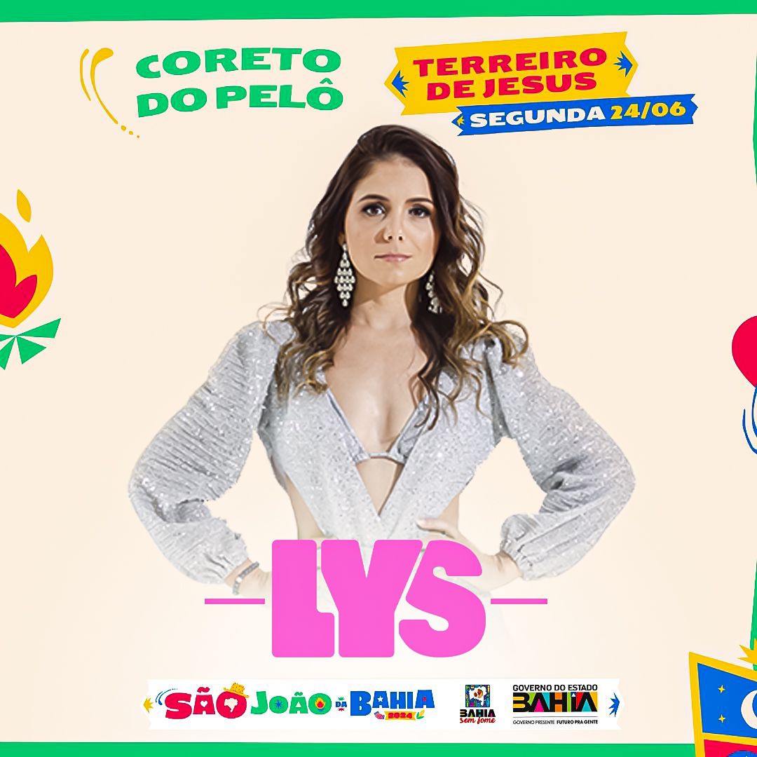 A cantora ichuense Lys está na programação do São João da Bahia promovido pelo Governo do Estado e nesta segunda-feira, 24 de junho, vai se apresentar no Coreto do Pelô (Terreiro de Jesus) com início previso para meia-noite.