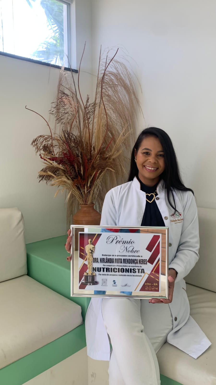 Formada em Nutrição desde 2014 pela Faculdade Nobre e Pós-Graduada em Nutrição Clínica e Funcional, Nirlândia Mota Mendonça Neres, recebeu o Prêmio Nobre no quesito Nutricionista da cidade conforme pesquisa popular.