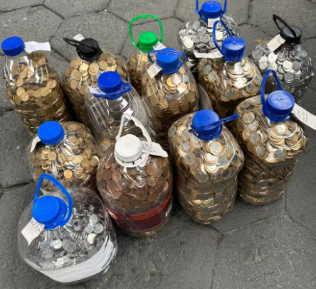 “Eu sempre guardo assim, já é a segunda vez. E tem que trocar com os outros quando tem um volumezinho legal. Vou começar de novo, só que agora só com [moedas] de um real, têm muito volume aquelas moedas”, comenta.