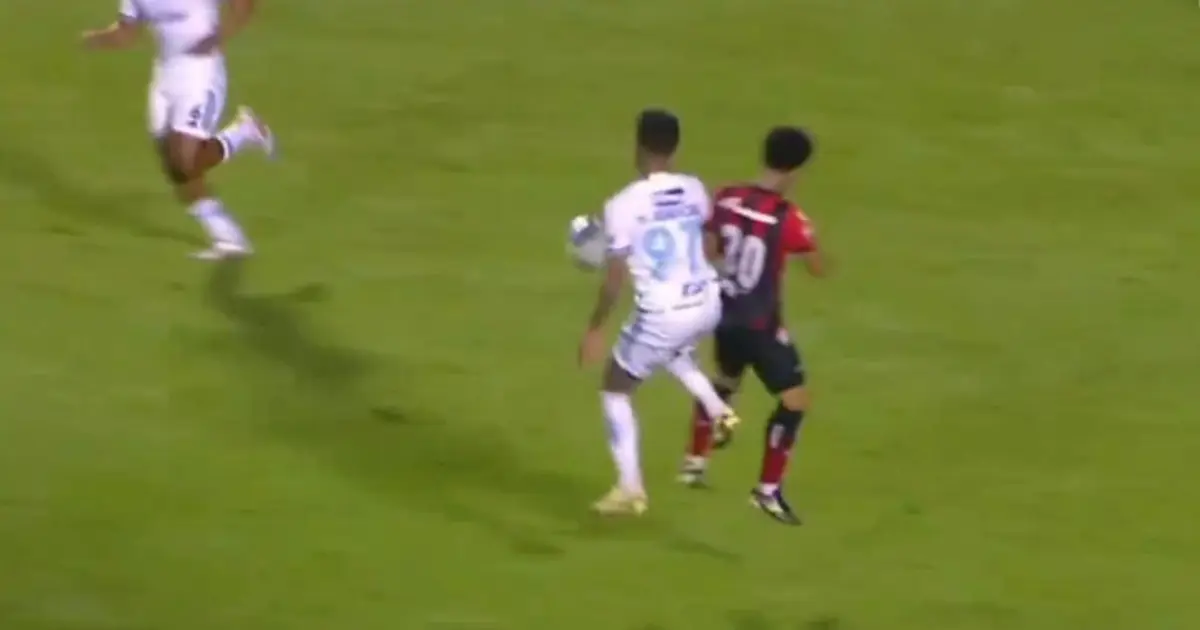 O lance em questão ocorreu aos 38 minutos, no momento do segundo gol da Celeste. Matheus Henrique, dominou a bola vindo do alto e tocou para Matheus Pereira na esquerda, que cruzou para Arthur Gomes escorar para o uruguaio Dinenno empatar a partida. Comandada por Daniel Nobre Bins, do Rio Grande do Sul, a equipe de arbitragem de vídeo solicitou a checagem de uma “possível mão”.