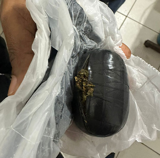 De acordo com a polícia, o scanner identificou um objeto estranho na região pélvica da mulher. A suspeita alegou problemas de saúde para tentar justificar a situação, mas foi levada ao hospital da cidade, onde exames confirmaram a presença de uma porção de droga em seu ânus.