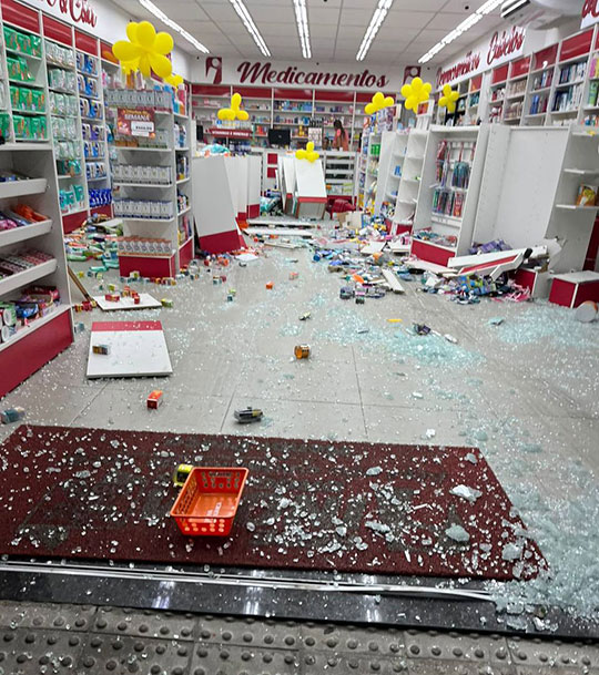 Carro invade farmácia no centro de Valente; ninguém ficou ferido