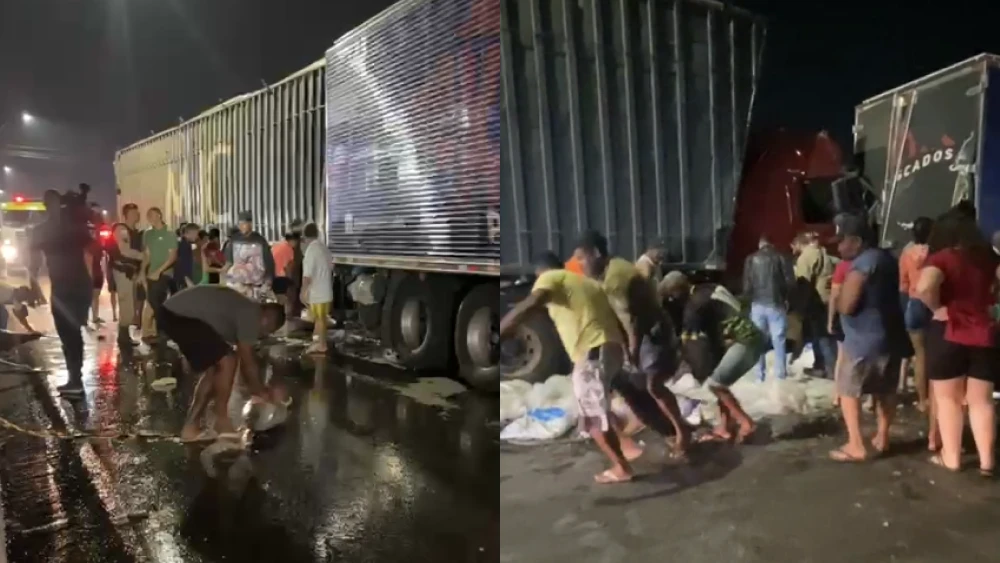 A população aproveitou um acidente entre caminhões e pegou uma grande carga de atum que caiu na Via Expressa, sentido Betim, na noite desta quinta-feira (19). O caso aconteceu na altura do bairro Tropical, em Contagem, na Grande BH.