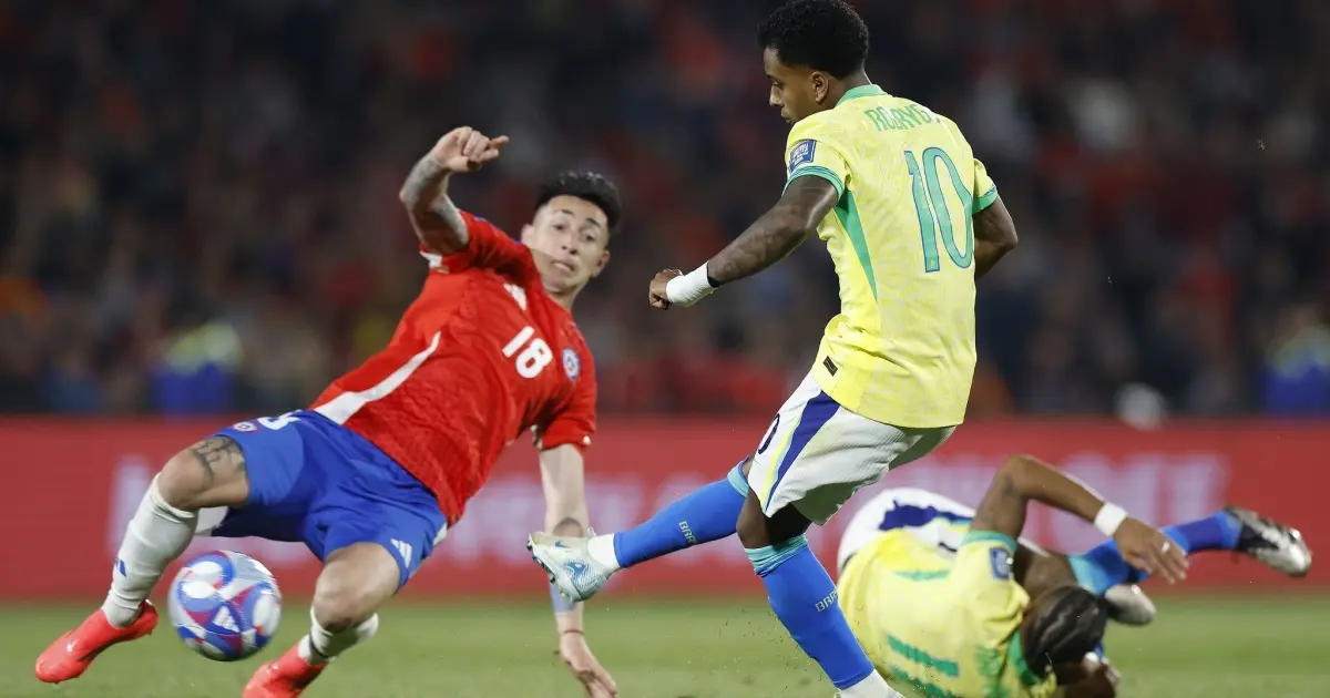 O duelo entre Chile e Brasil, válido pela 9ª rodada das Eliminatórias para a Copa do Mundo 2026, terminou com uma vitória por 2 a 1, de virada, na noite desta quinta-feira (10). Os gols do Brasil vieram dos pés de Igor Jesus e Luiz Henrique, já o gol dos chilenos foi na conta do Vargas, ainda no primeiro tempo.