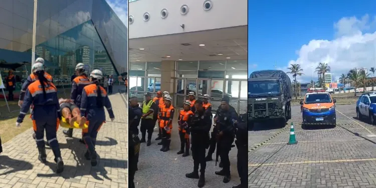 Uma simulação de desastre envolvendo ataque com produtos perigosos aconteceu em Salvador, na manhã deste sábado (2), no Centro de Convenções da cidade. Várias instituições participaram do exercício, incluindo a Polícia Técnica da Bahia, Defesa Civil, a Polícia Militar, o Corpo de Bombeiros Militar, a Marinha, a Transalvador, o Serviço de Atendimento Móvel de Urgência (Samu) e a Brigada Voluntária Anjos Jacuipenses.