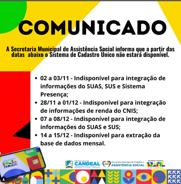 Comunicado Secretaria de Assistência Social de Candeal: O Sistema de Cadastro Único Versão 7 está temporariamente instável.