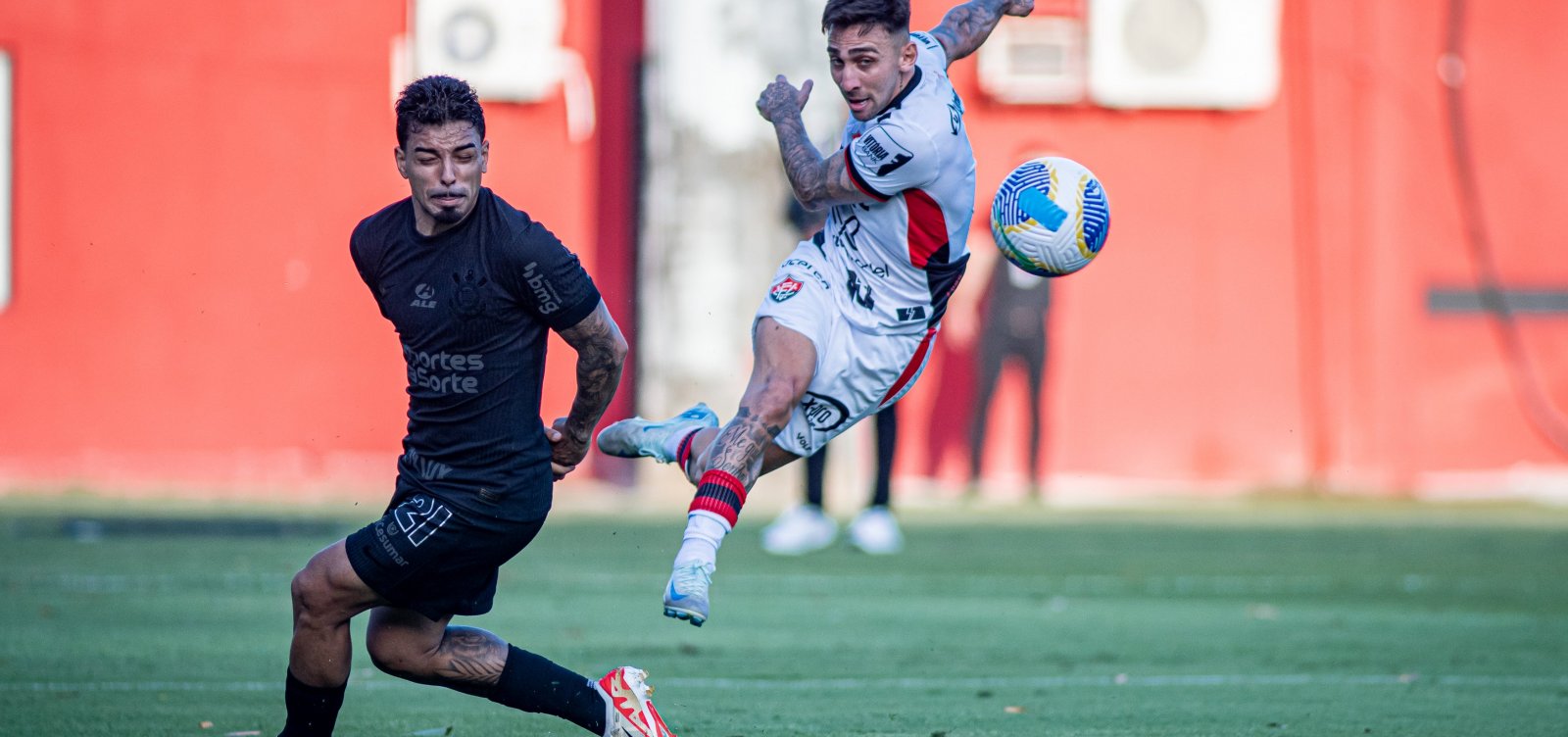 Assim como no primeiro tempo, a etapa complementar começou com o Vitória pressionando o Corinthians. A diferença é que ao invés de fazer nova lambança, o goleiro Hugo Souza salvou o time paulista aos cinco minutos ao grande defesa no chute rasteiro de Gustavo Mosquito. Aos 13, foi a vez de Carlos Eduardo quase colocar o Leão na frente do placar ao finaliza de primeira, mas a bola desviou no zagueiro Gustavo Henrique e foi para fora. Depois, aos 21, Mosquito puxou o contra-ataque pela direita, foi à linha de fundo e cruzou, mas ninguém do Rubro-Negro conseguiu desviar para o fundo do gol.