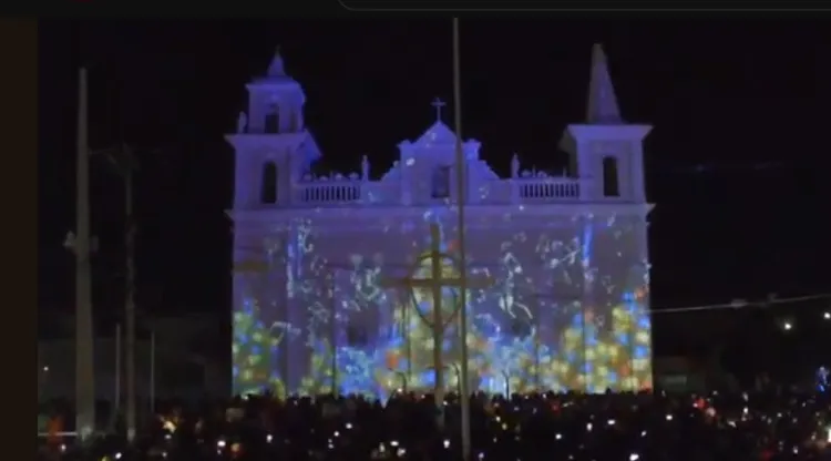 Em seguida a projeção mapeada e show piro musical. Tudo isto em frente a igreja matriz para milhares de pessoas que pisaram pela primeira vez na nova praça da matriz.