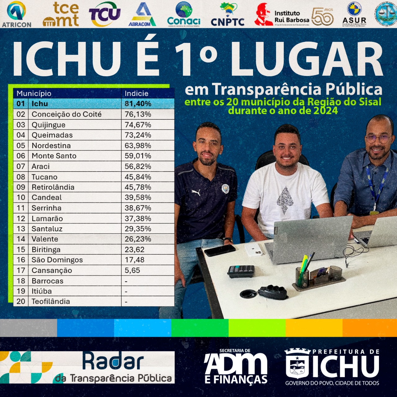 A conquista de Ichu é um exemplo de boas práticas de gestão pública e reforça o papel fundamental da transparência como pilar para o fortalecimento da democracia e da confiança da população nas instituições municipais.