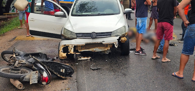 Dois feridos vítimas de colisão entre carro e moto no Bairro Nazaré em Jacobina