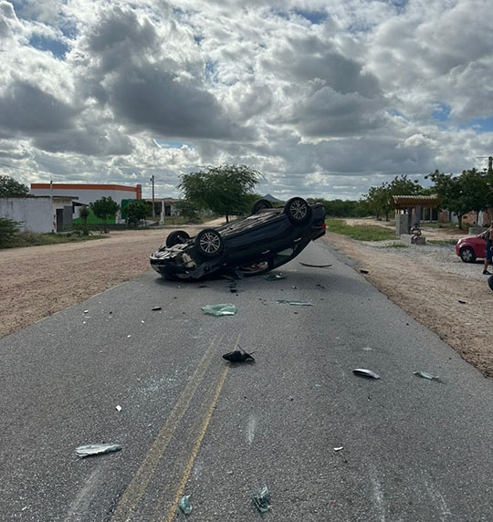 Corolla capota e bloqueia pista após colisão entre 3 veículos na BA-120, em Santaluz; ninguém ficou ferido gravemente