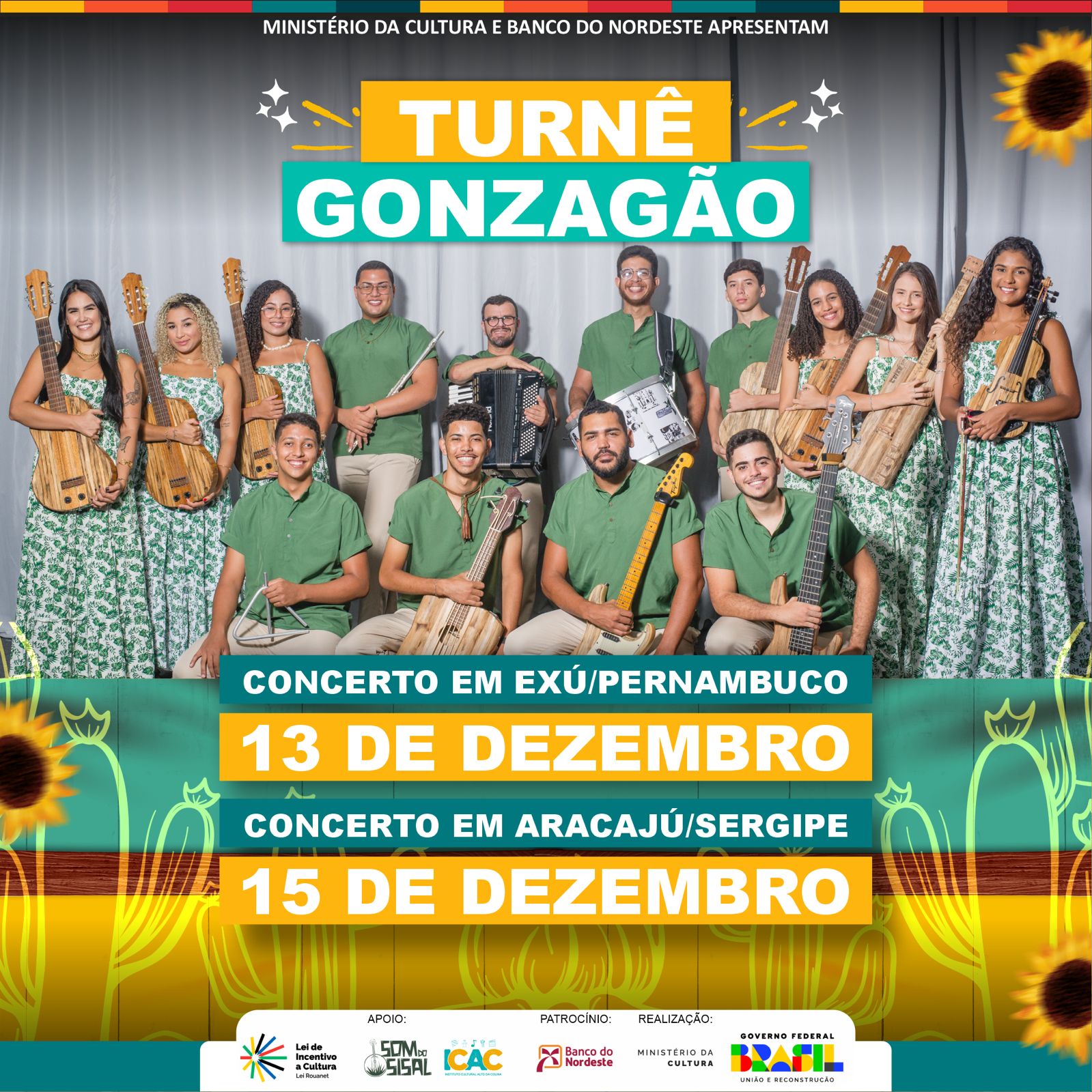 A primeira cidade a receber a “Turnê Gonzagão” é Exú no Pernambuco, no mesmo dia e lugar onde nasceu o rei do baião. O espetáculo musical da orquestra integrará os festejos em homenagem ao aniversário do maior ícone da música nordestina, organizado pelo coletivo multicultural “Bora Gonzaguear”. O evento será realizado na praça Luiz Gonzaga, nesta sexta-feira, dia 13 de dezembro, a partir das 19h30.
