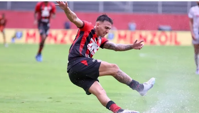Aos 16 minutos, Eydison foi acionado em velocidade no ataque, mas perdeu a chance do contra-ataque para o zagueiro do Vitória.